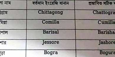 ৫ জেলার নামের বানান বদলে গেল
